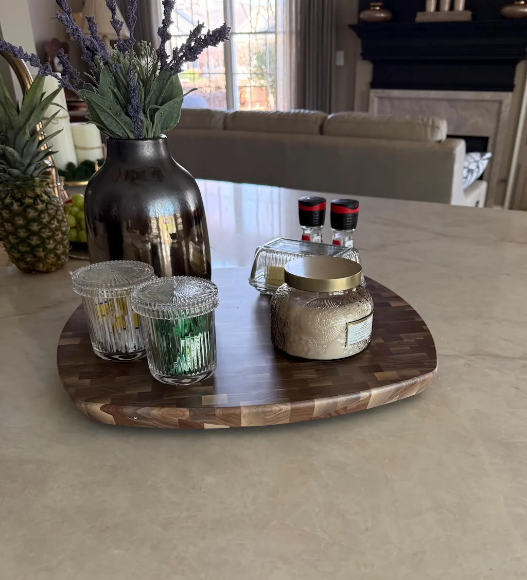 Step into a world of luxury and convenience with the Beloit Turntable. This is not just any lazy susan – it's a statement of style and functionality. Conceived in the skilled hands of Amish experts in Northern Wisconsin, it flaunts a distinctive square-round form, carved from 1 ¼ inches of solid wood and adorned with a mesmerizing end grain pattern. The surface resists water and wear, promising effortless maintenance. Nestled on protective felt and powered by sturdy Oshkosh ball bearings, this turntable effortlessly carries up to 750 pounds, making it a blend of art and architecture.